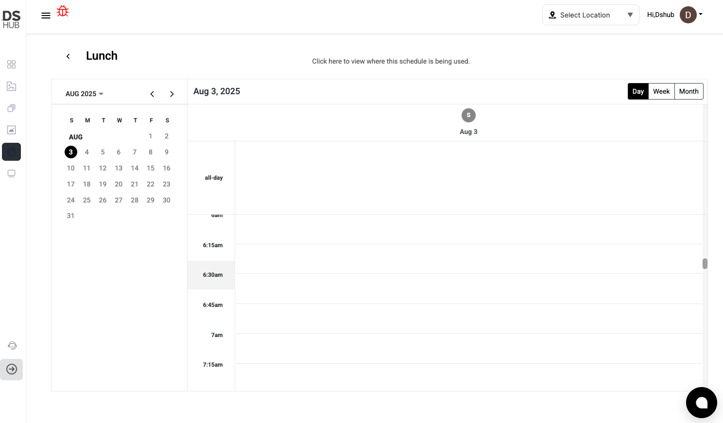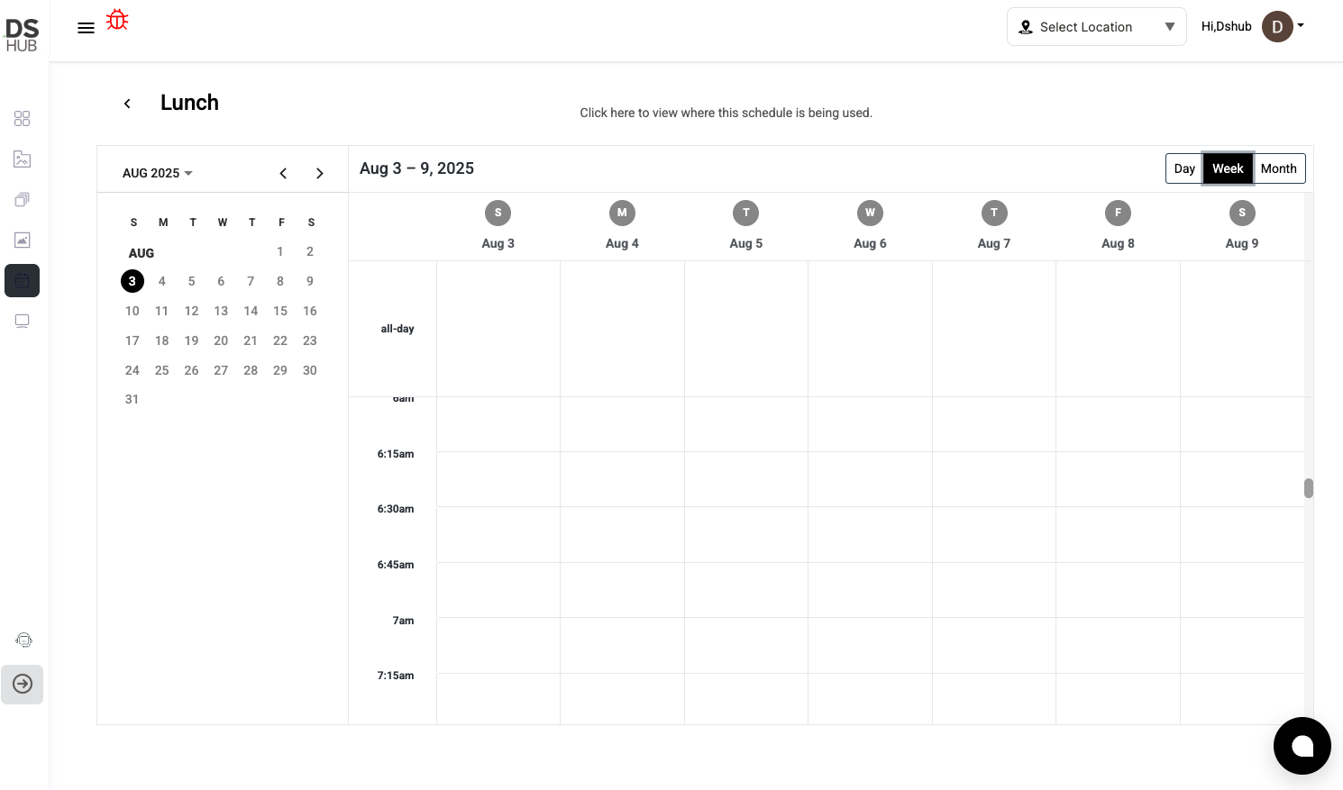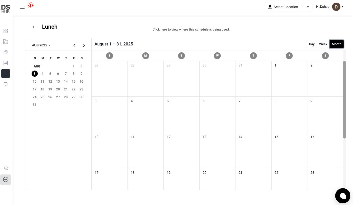 Once you create a schedule in DSHub, you are automatically taken to the Calendar View for that schedule.